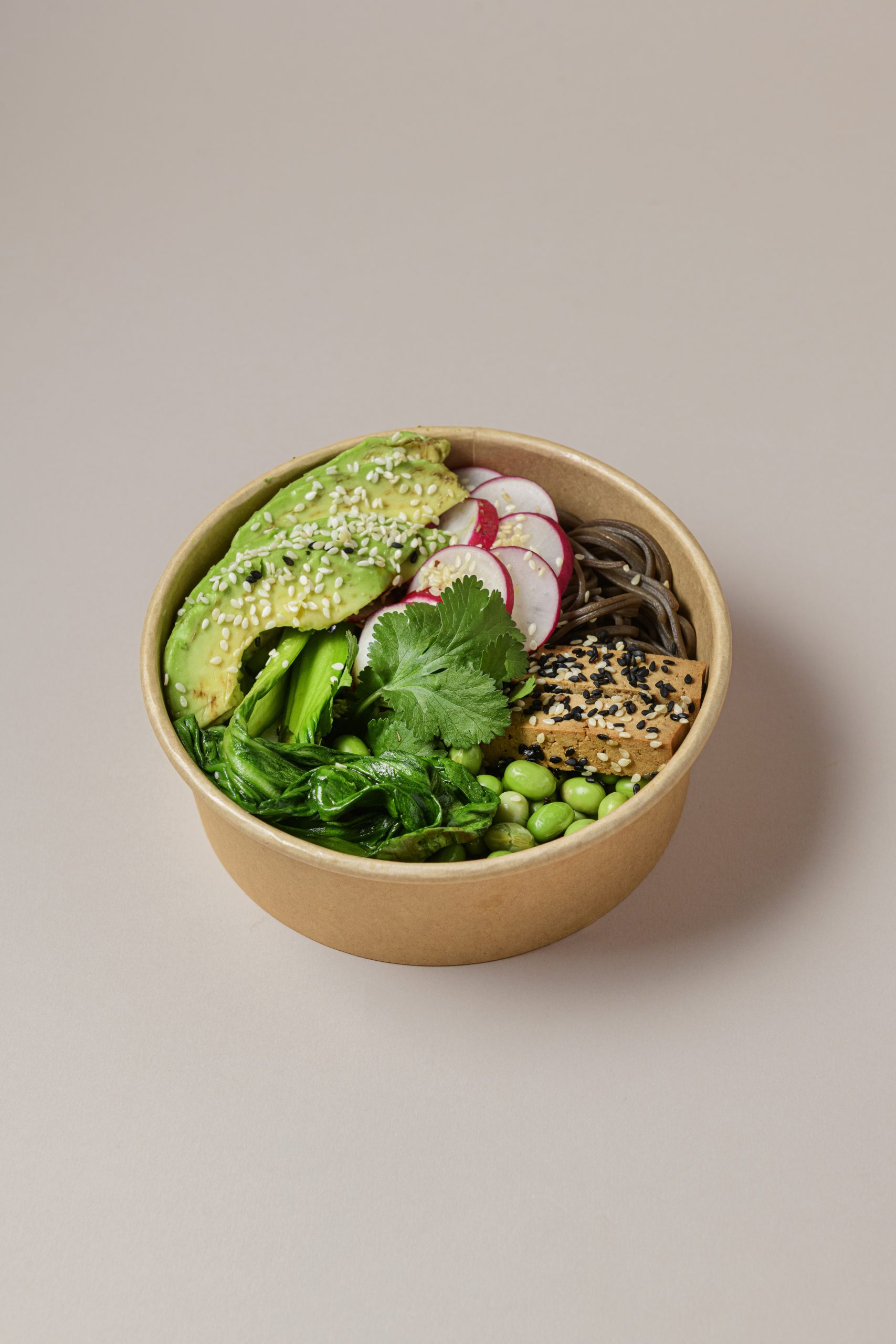- 1x Bowl z tofu w soi z czarnym sezamem (kapusta pak choi, awokado, makaron soba, piklowana rzodkiewka, fasola edamame)