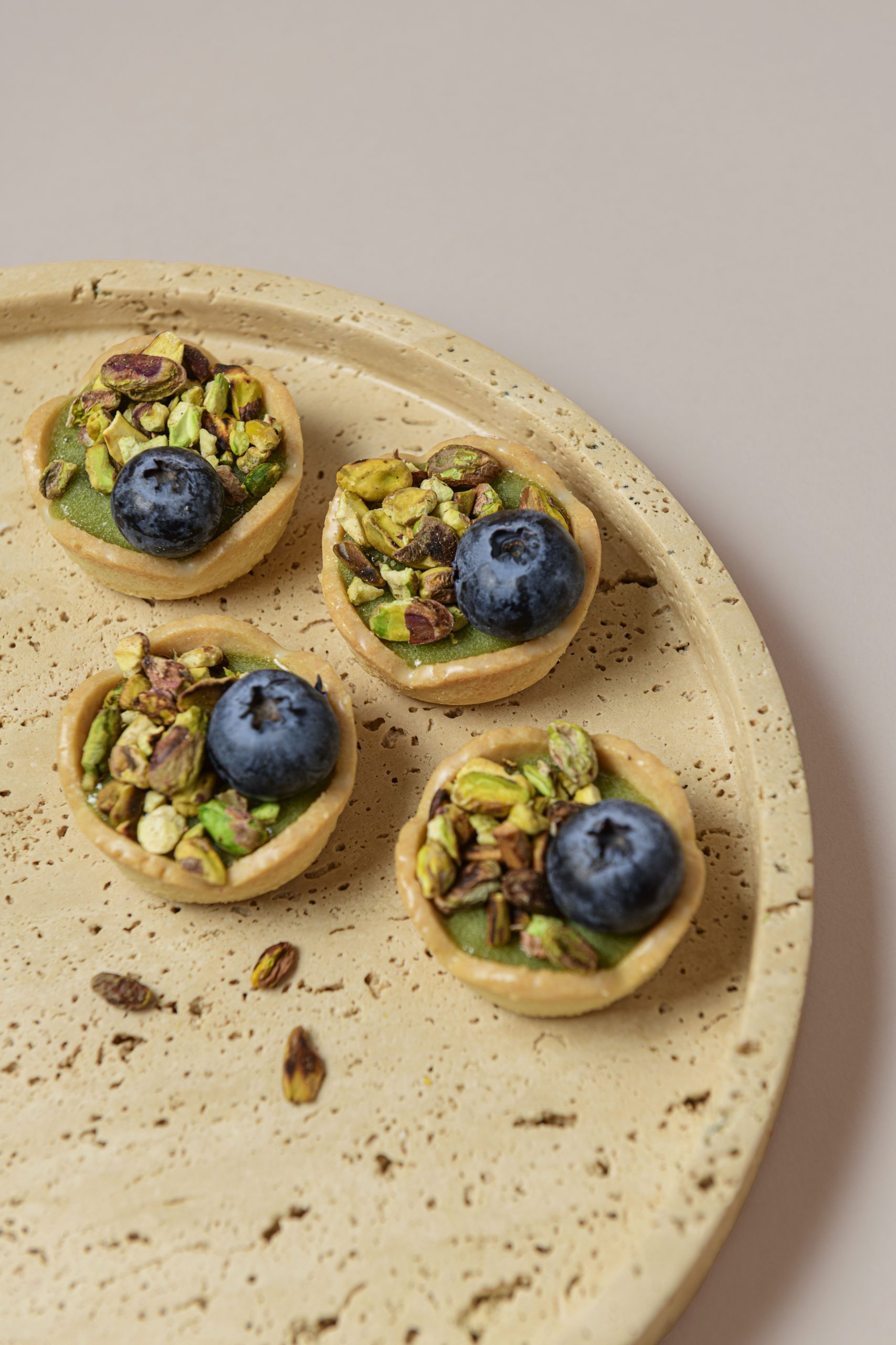 - 4x babeczka z kremem pistacjowym z borówką i siekanymi pistacjami
