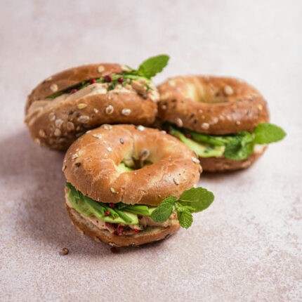 - bagietka pełnoziarnista z pastą łososiową, kaparami i koperkiem