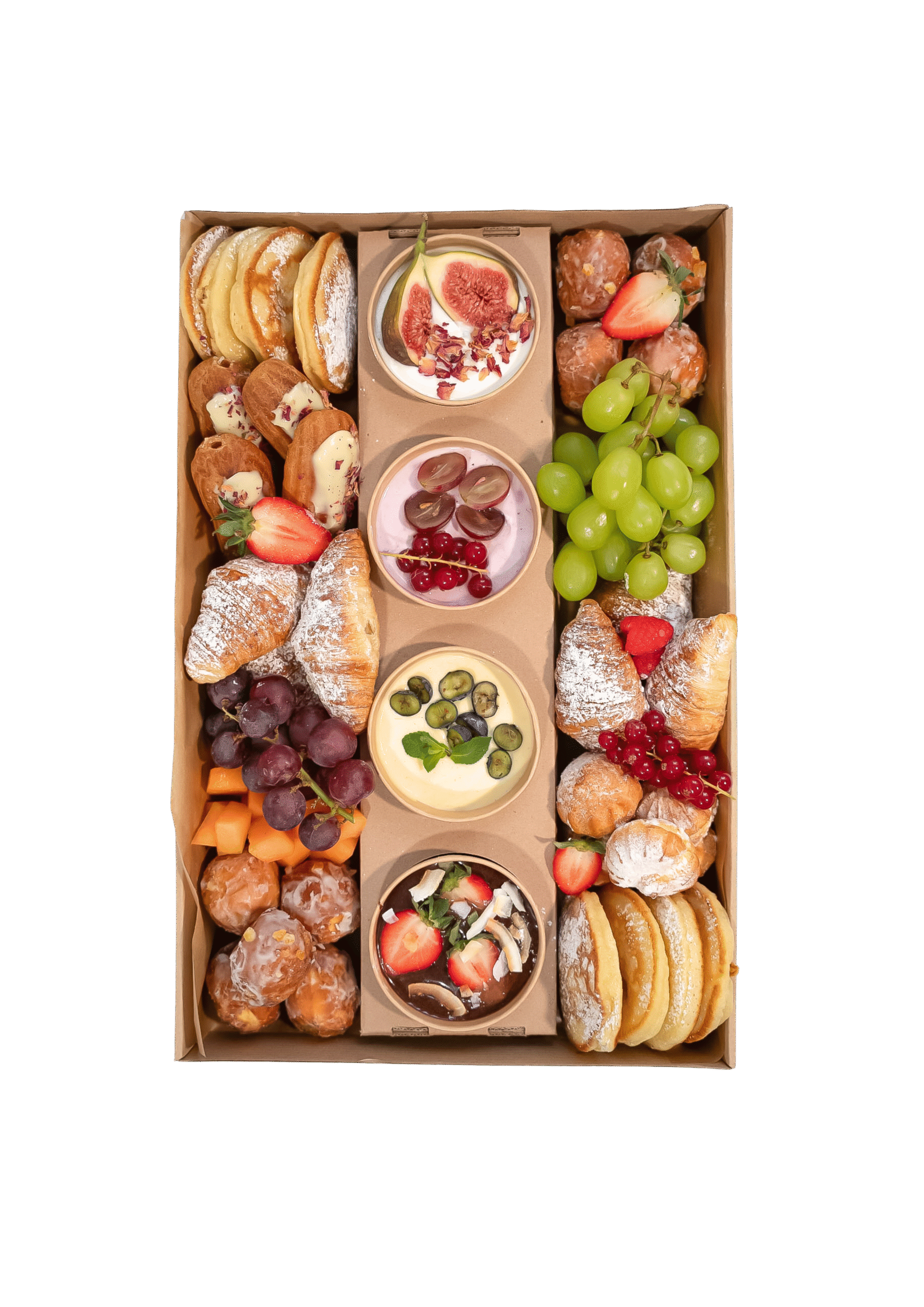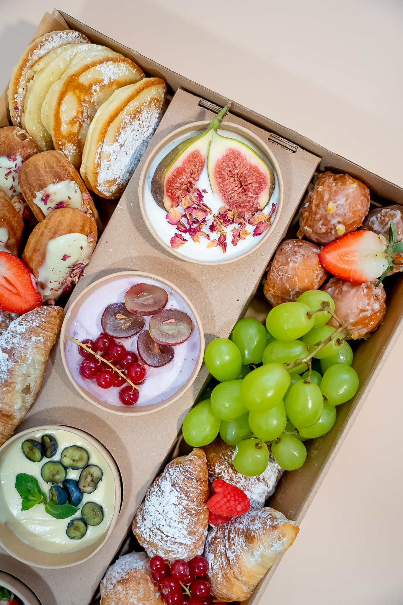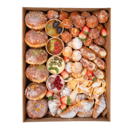 To gotowy box na Tłusty Czwartek, który świetnie sprawdzi się w biurze, domu lub podczas spotkań firmowych. Wygodna forma i różnorodny skład czynią go jednym z najchętniej wybieranych gotowych boxów z dostawą w Warszawie.